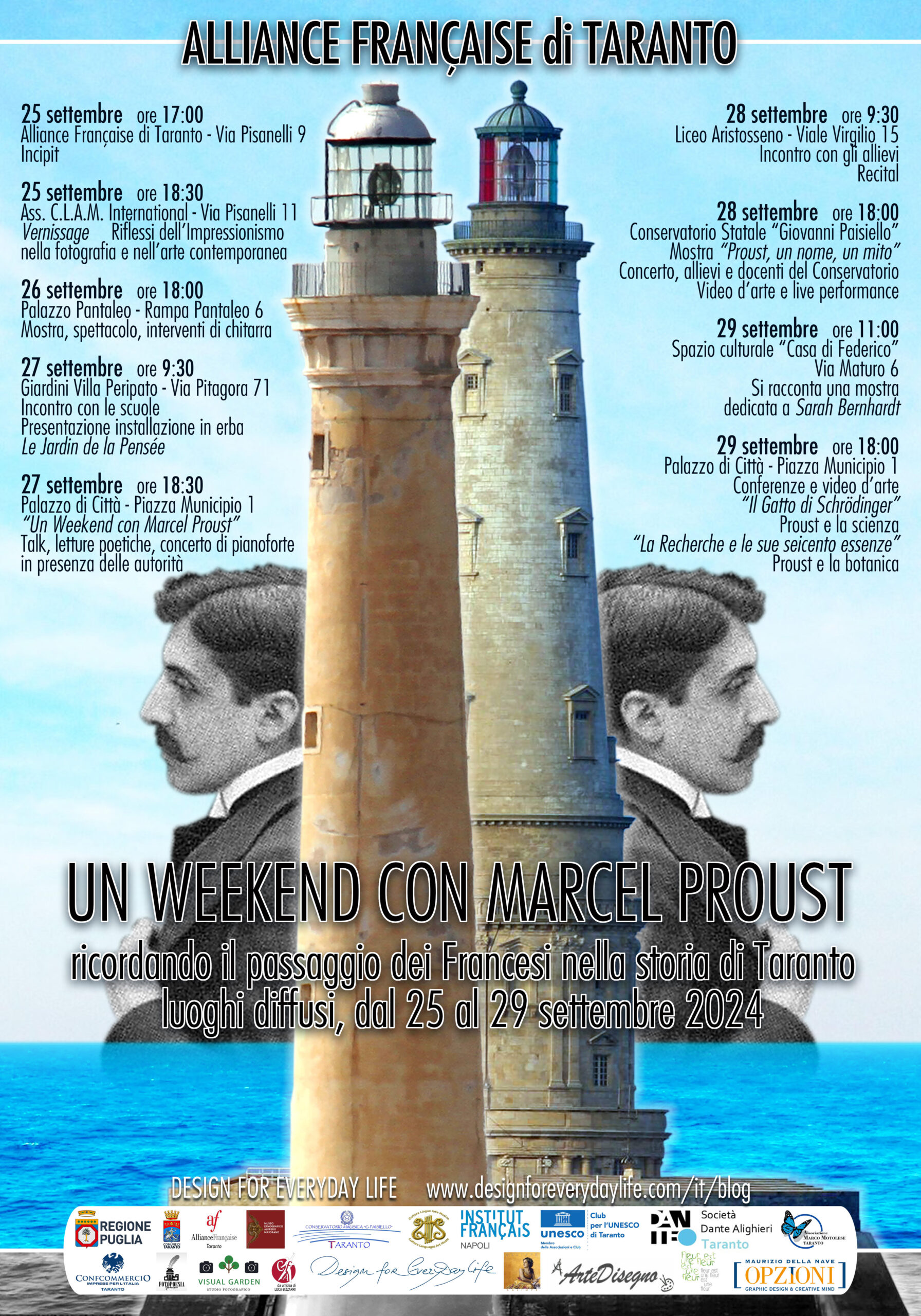Dal 25 al 29 settembre 2024 l’Alliance Francaise di Taranto, presenta: “Un weekend con Marcel Proust” mostra fotografica con conferenze, spettacoli, concerti, letture.